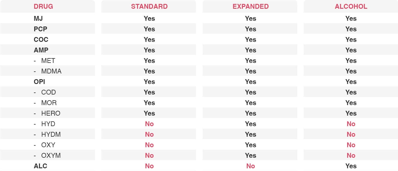 The expanded 5 panel test adds opioids like hydrocodone, oxycodone, hydromorphone, and oxymorphone. These became a DOT requirement in 2017 and give employers stronger protection against opioid misuse. The standard 5 panel is still an option when only the original five drugs are a concern or when budgets are limited.