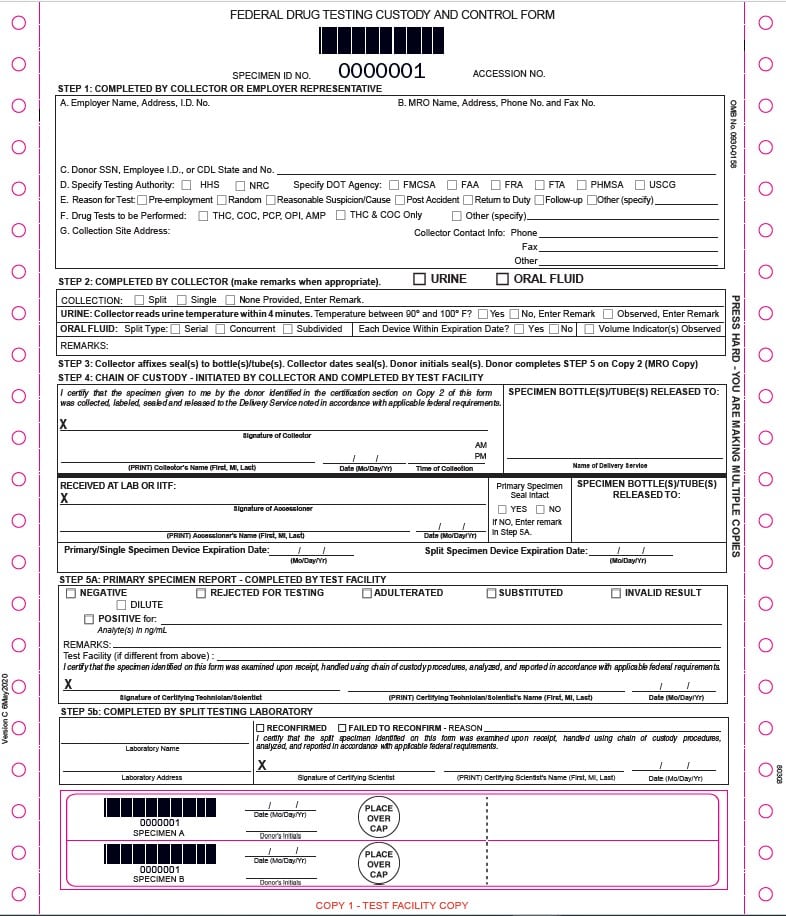 The 2020 Federal Drug Testing Custody and Control Form (CCF) was revised and recently approved by the Office of Management and Budget (OMB) on August 17, 2020. It is currently in use. Below you will find more information on the current DOT CCF form and the 2020 Federal CCF changes.